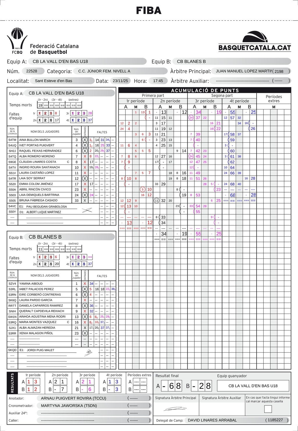 | C.B. La Vall d’en Bas | 13 | 21 | 21 | 13 | 68 |