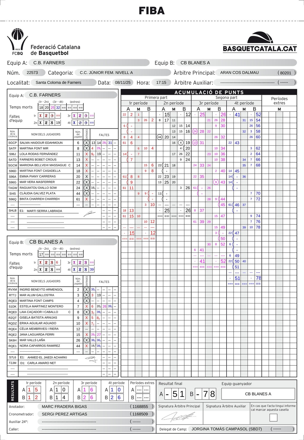 Però a la tornada del descans, uff, tot ha canviat. Les del Blanes són més com les “ocean’s eleven”, organitzades, defensen, roben, i roben molt, i passen i encistellen, i tornen a defensar, a robar, i a encistellar. Han activat el ‘speedwatching’ a la segona part, i fan el doble de punts que en tota la primera.