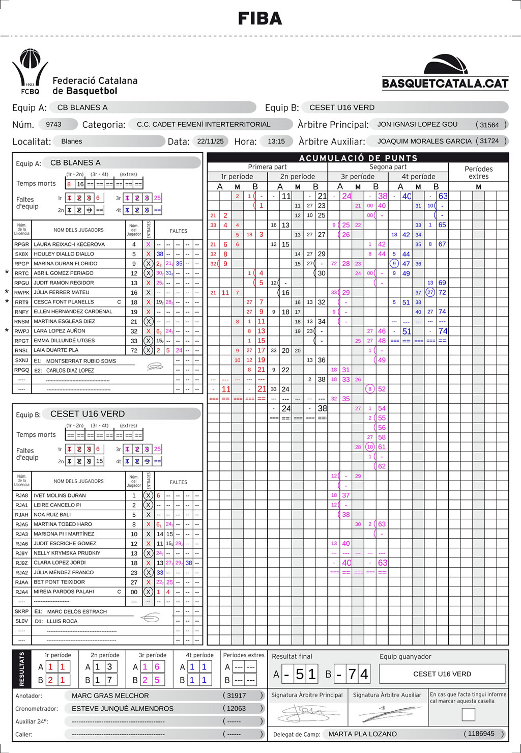 El Maresme ha començat més fort i s’ha endut el primer quart per 14-8. Tot i això, a partir del segon període el Blanes ha reaccionat clarament: l’equip ha sortit molt més connectat, ha augmentat la intensitat i ha capgirat el partit amb un parcial de 5-14.
