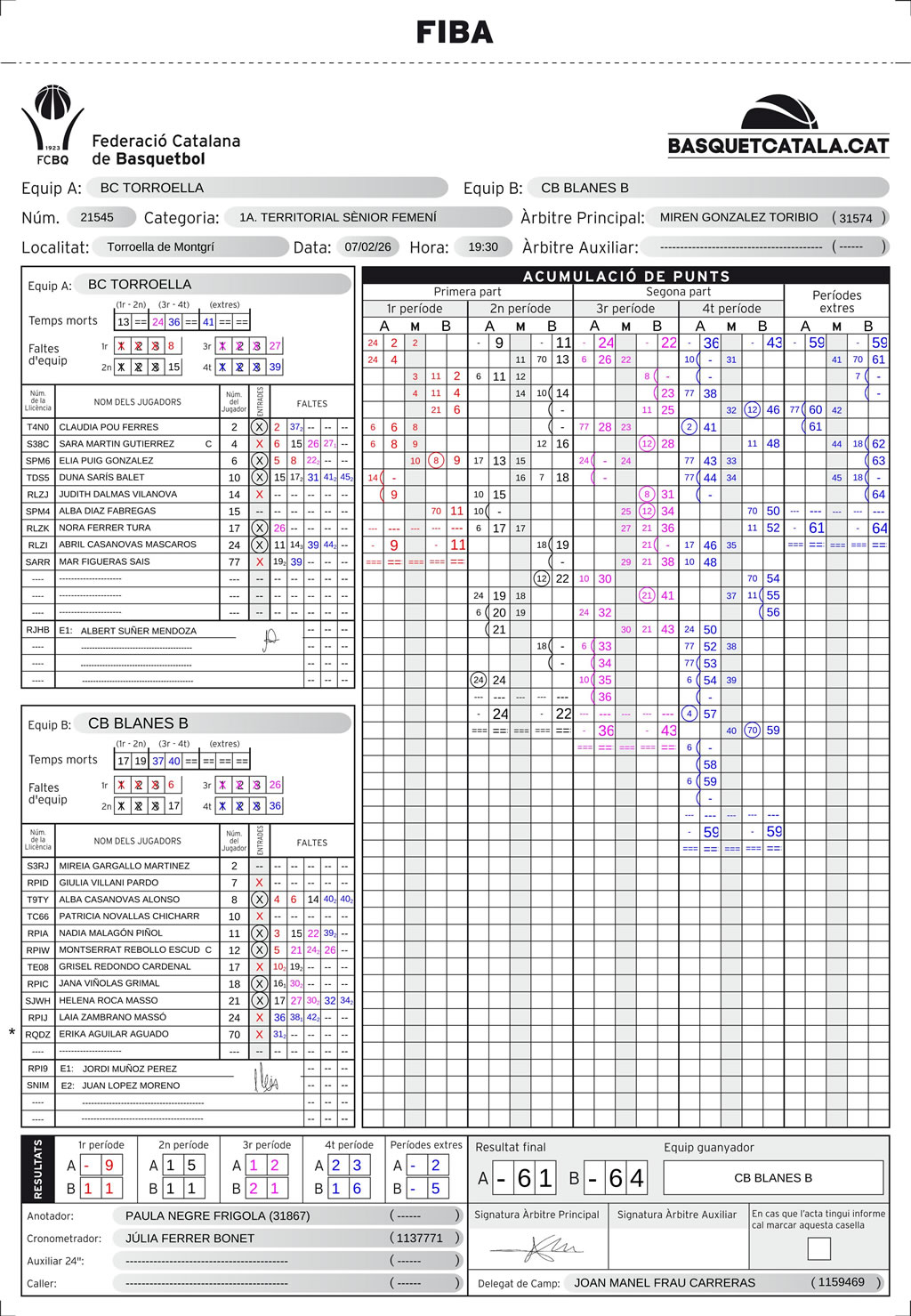 | 07/02/2026 | 19:30 | Sènior B femení | 2025-26 | Jornada 16 |