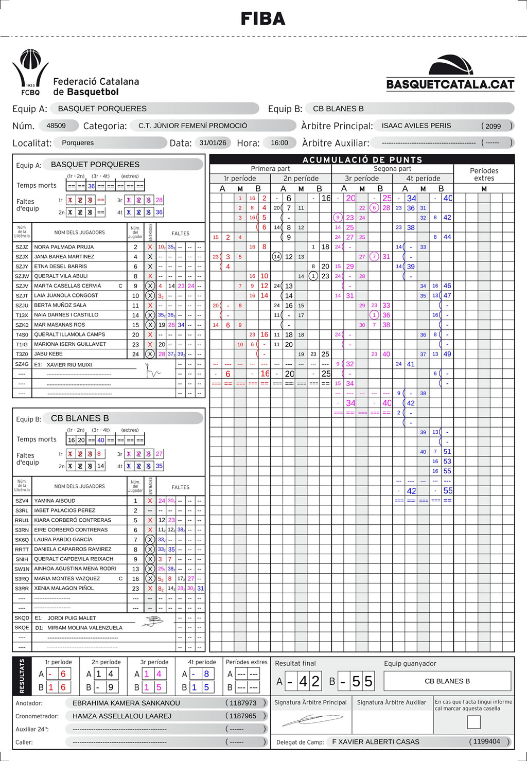 | 31/01/2026 | 16:00 | Júnior B femení | 2025-26 | Jornada 4 |