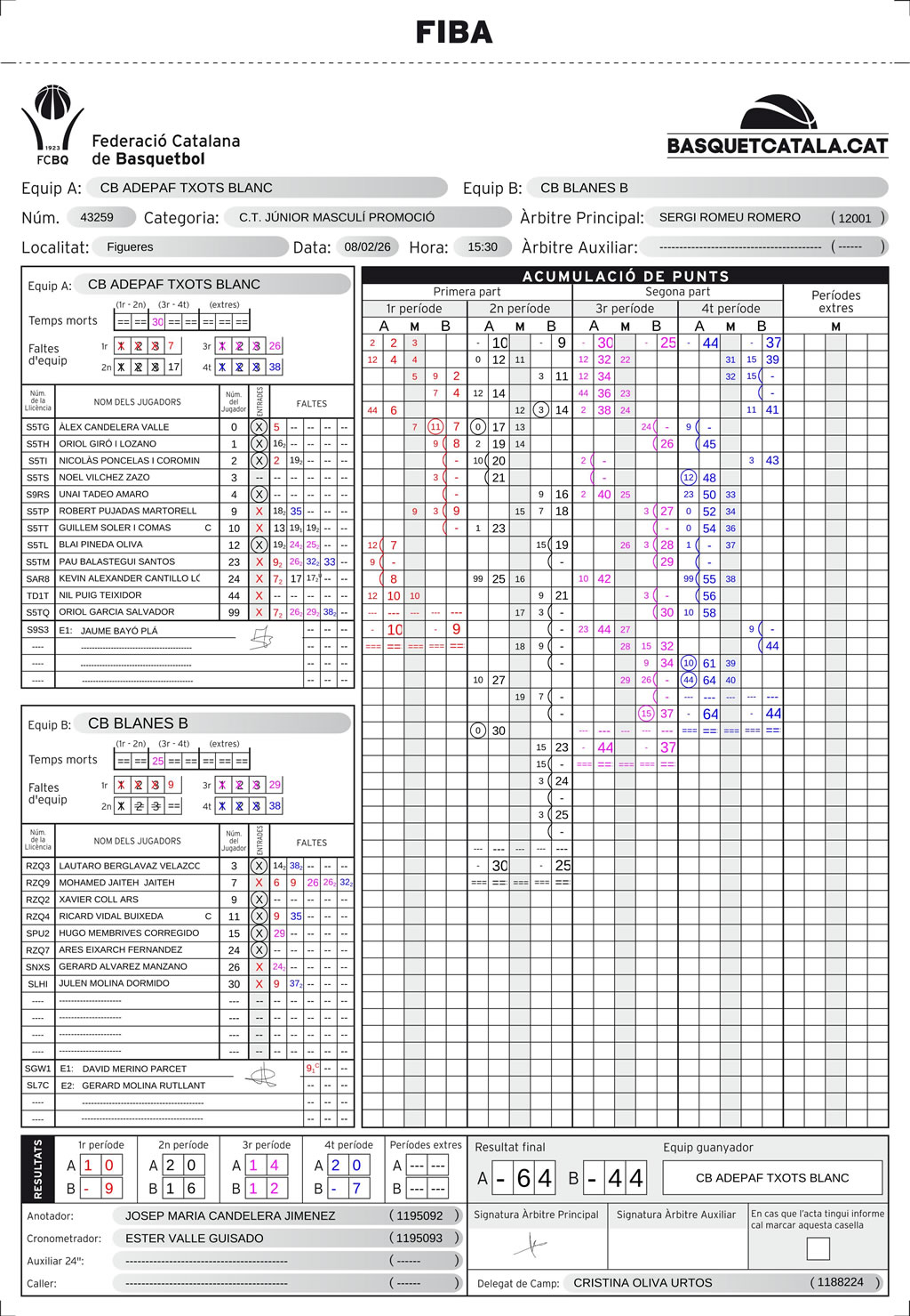 | C.B. ADEPAF | 10 | 20 | 14 | 20 | 64 |
