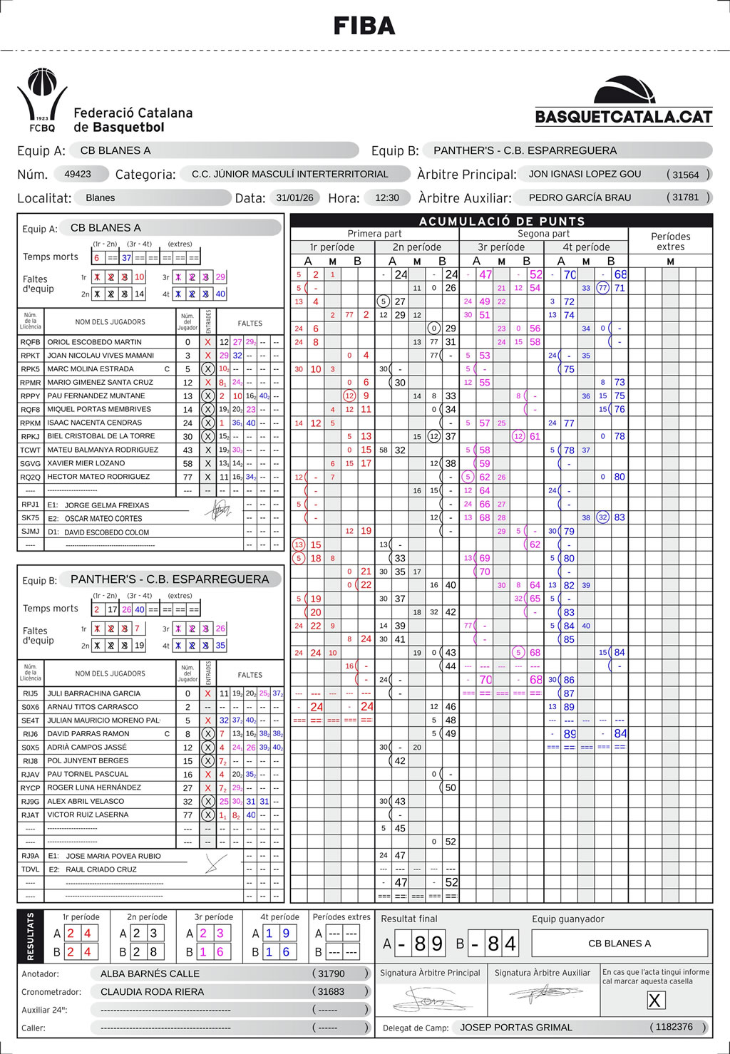 | C.B. Blanes | 24 | 23 | 23 | 19 | 89 |