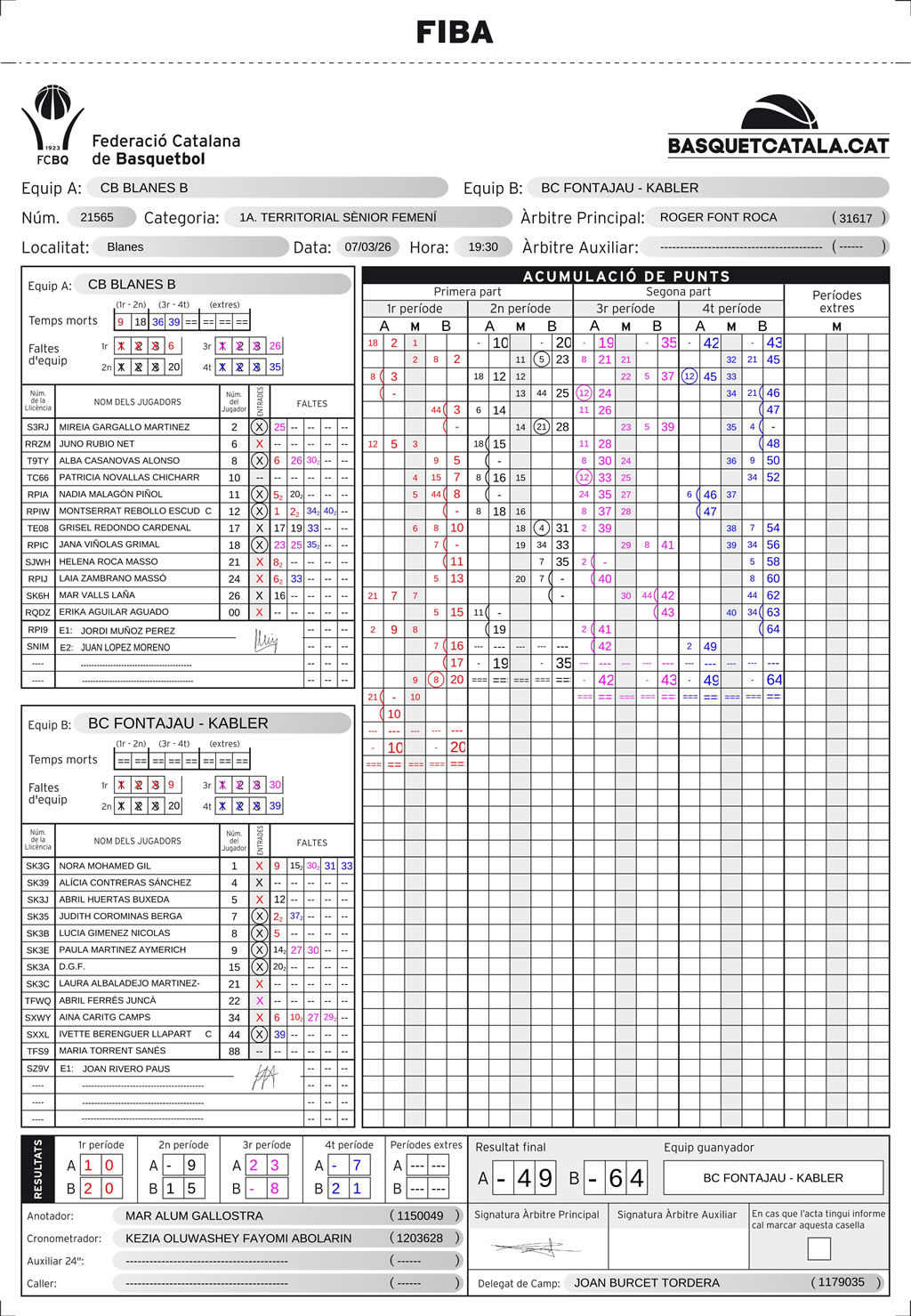 | 07/03/2026 | 19:30 | Sènior B femení | 2025-26 | Jornada 19 |