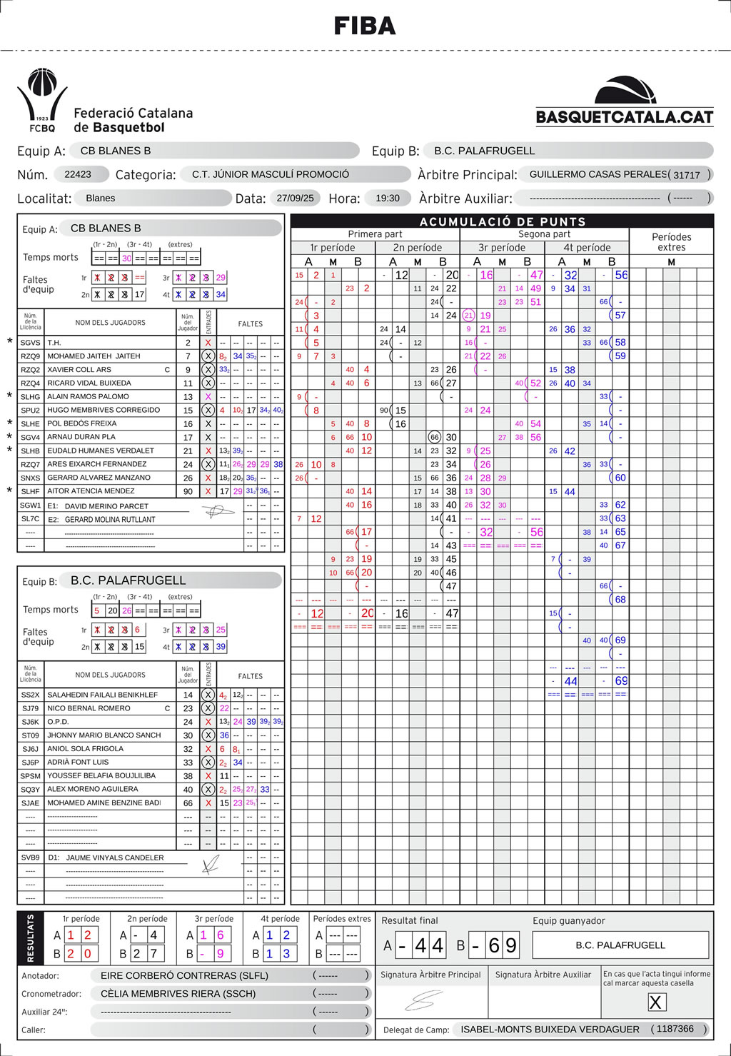 C.B. Blanes | 12 | 4 | 16 | 12 | 44 |