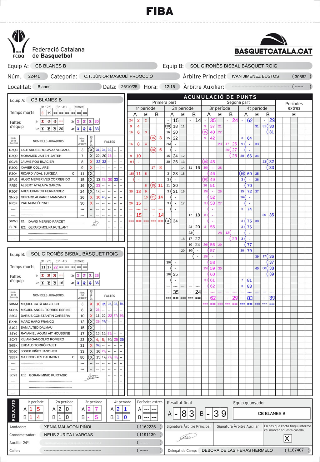| 26/10/2025 | 12:15 | Júnior B masculí | 2025-26 | Jornada 5 |