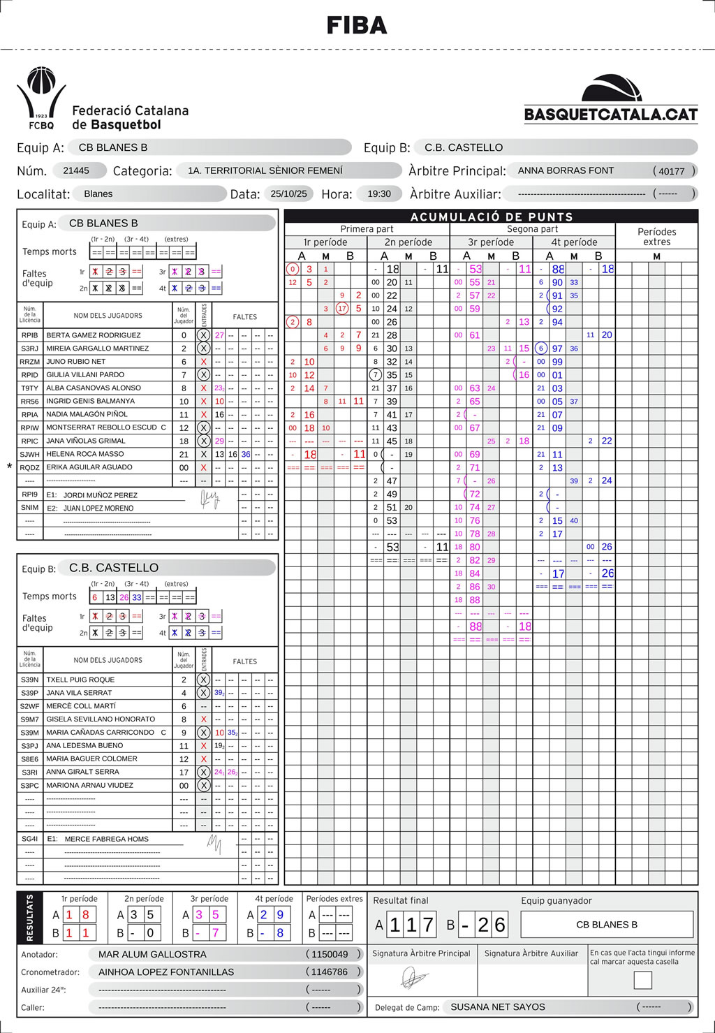 25/10/2025 19:30 Sènior B femení 2025-26 Jornada 5
