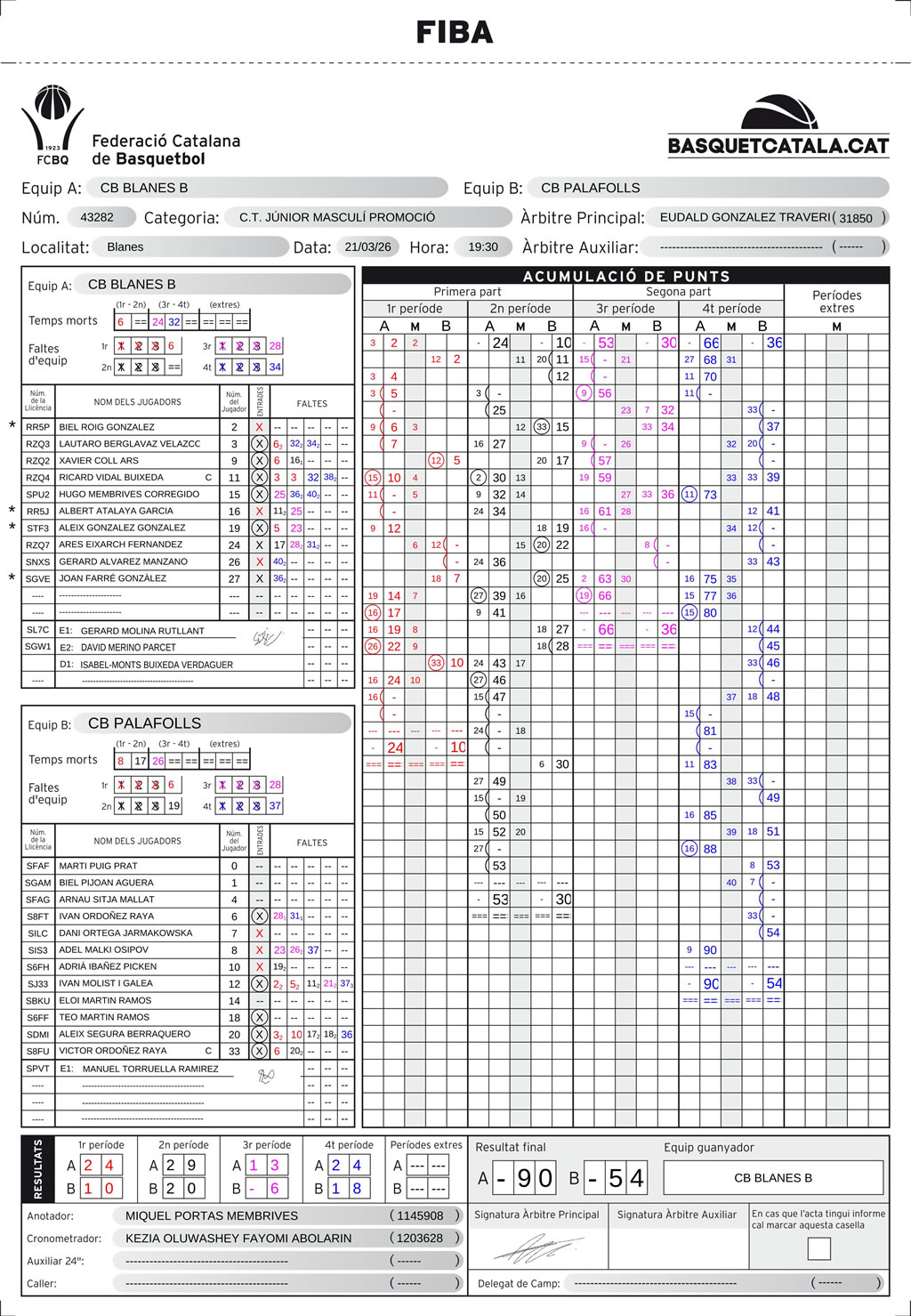 Hem arribat a la mitja part guanyant de 23. A la segona part del partit hem afluixat i la qualitat del joc ha anat a menys, sobretot en el tercer quart. A l’últim tram del matx hem tornat a recuperar l’encert i hem arribat al definitiu 90-54.