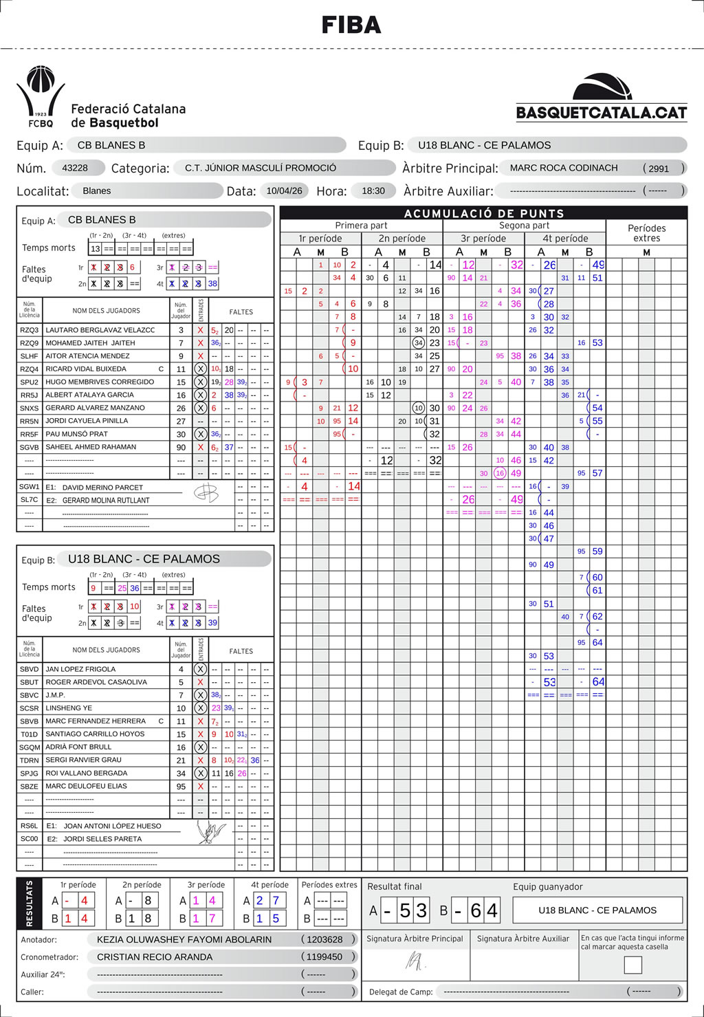 10/04/2026 18:30 Júnior B masculí 2025-26 Jornada 1