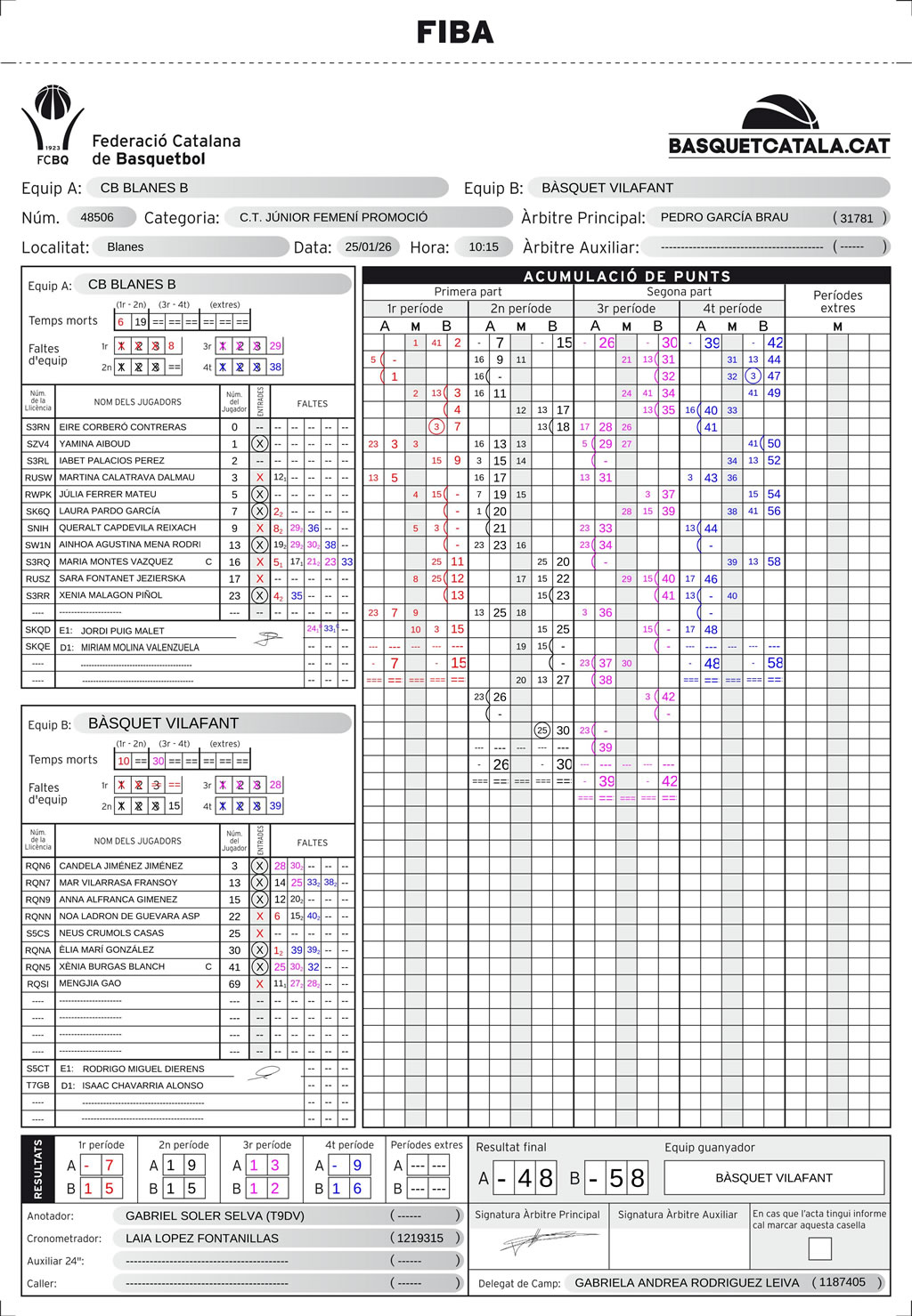 | 25/01/2026 | 10:15 | Júnior B femení | 2025-26 | Jornada 3 |