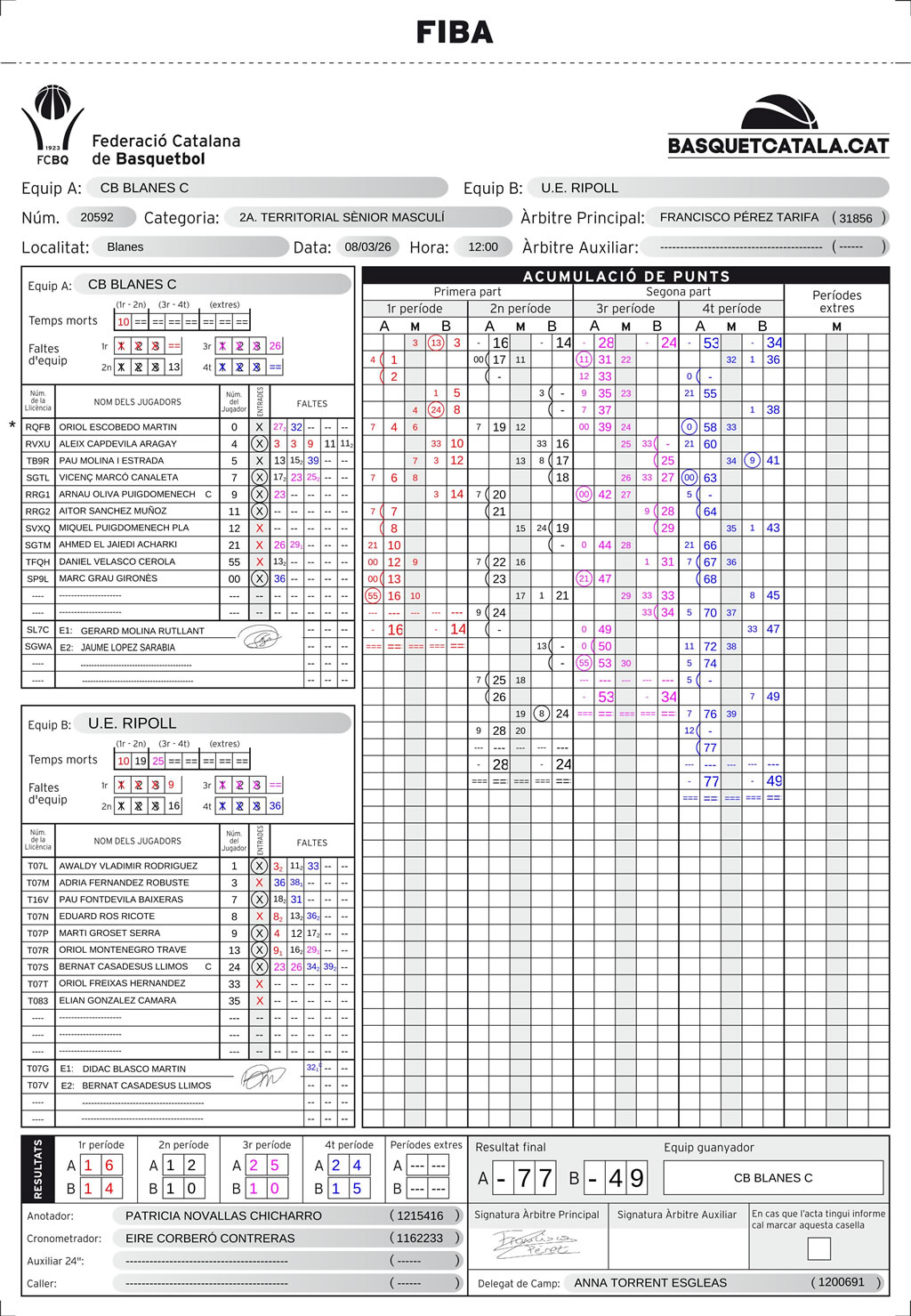 | 08/03/2026 | 12:00 | Sènior C masculí | 2025-26 | Jornada 6 |