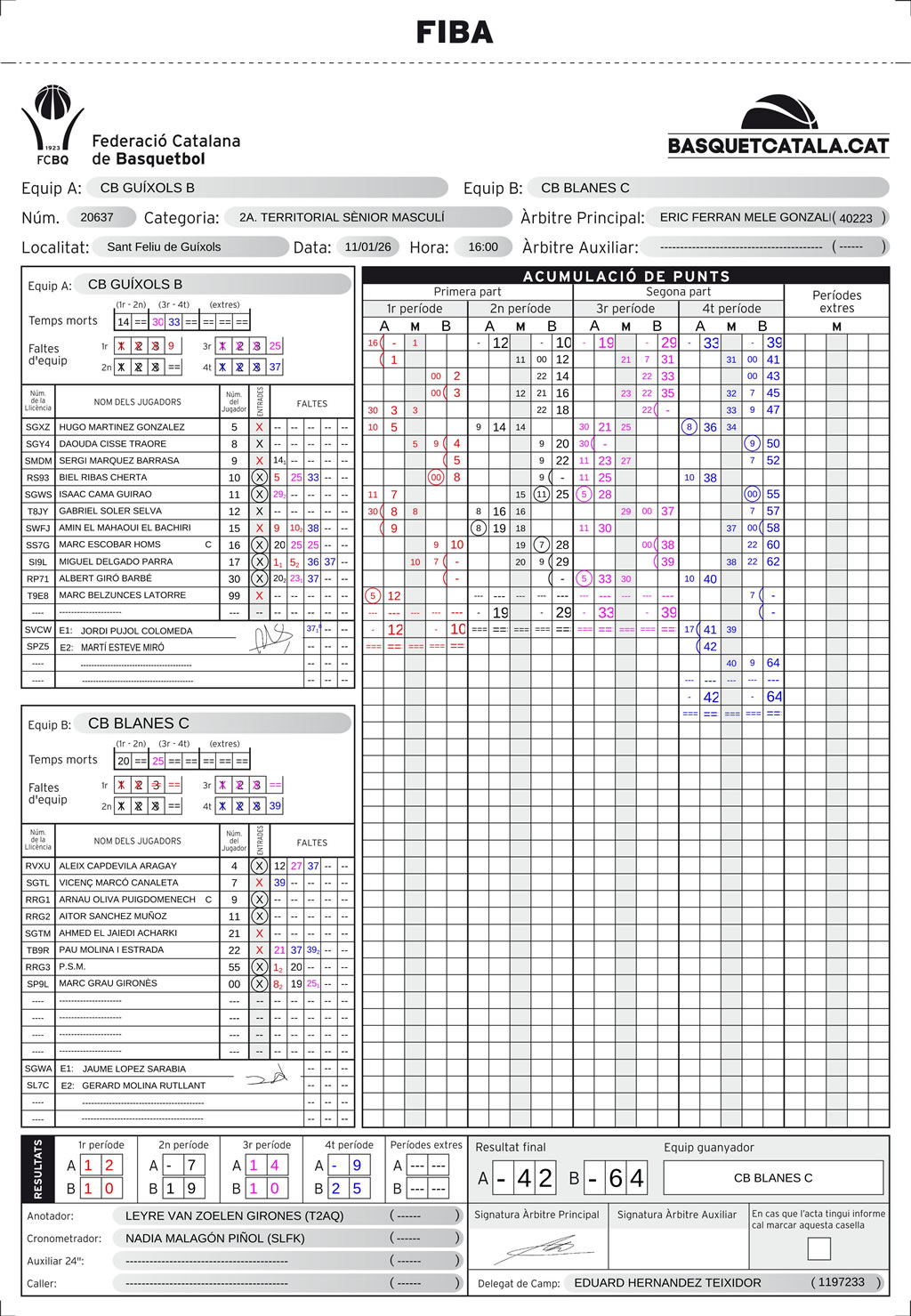 | 11/01/2026 | 16:00 | Sènior C masculí | 2025-26 | Jornada 12 |