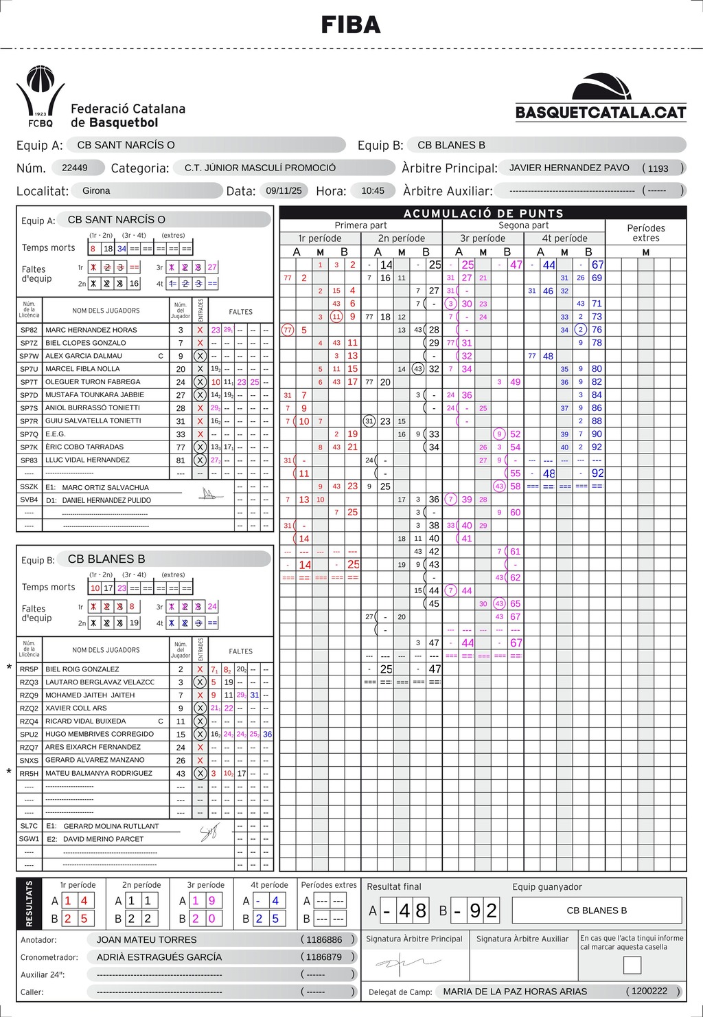 | C.B. Blanes | 25 | 22 | 20 | 25 | 92 |