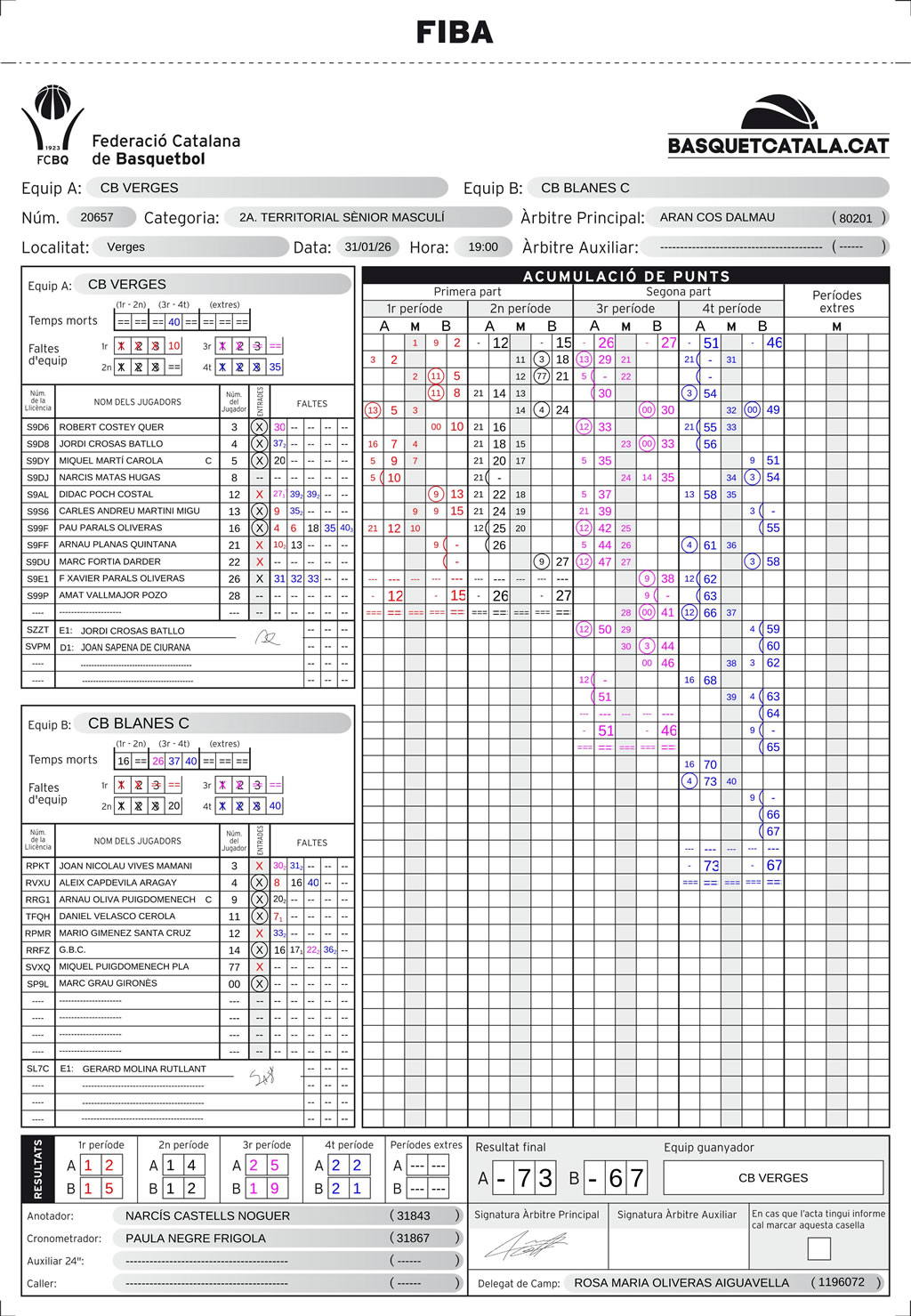 | C.B. Verges | 12 | 14 | 25 | 22 | 73 |