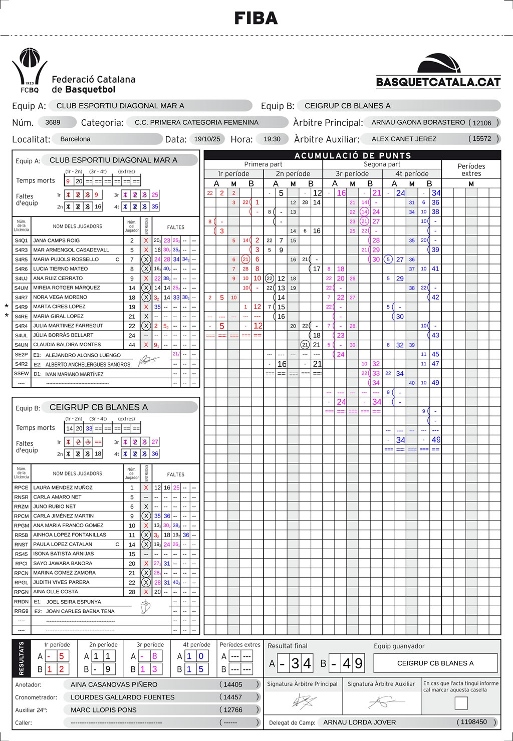 En l’últim període, les jugadores de Blanes van saber mantenir el ritme i tancar el partit amb ofici, deixant el marcador final en 34-49.