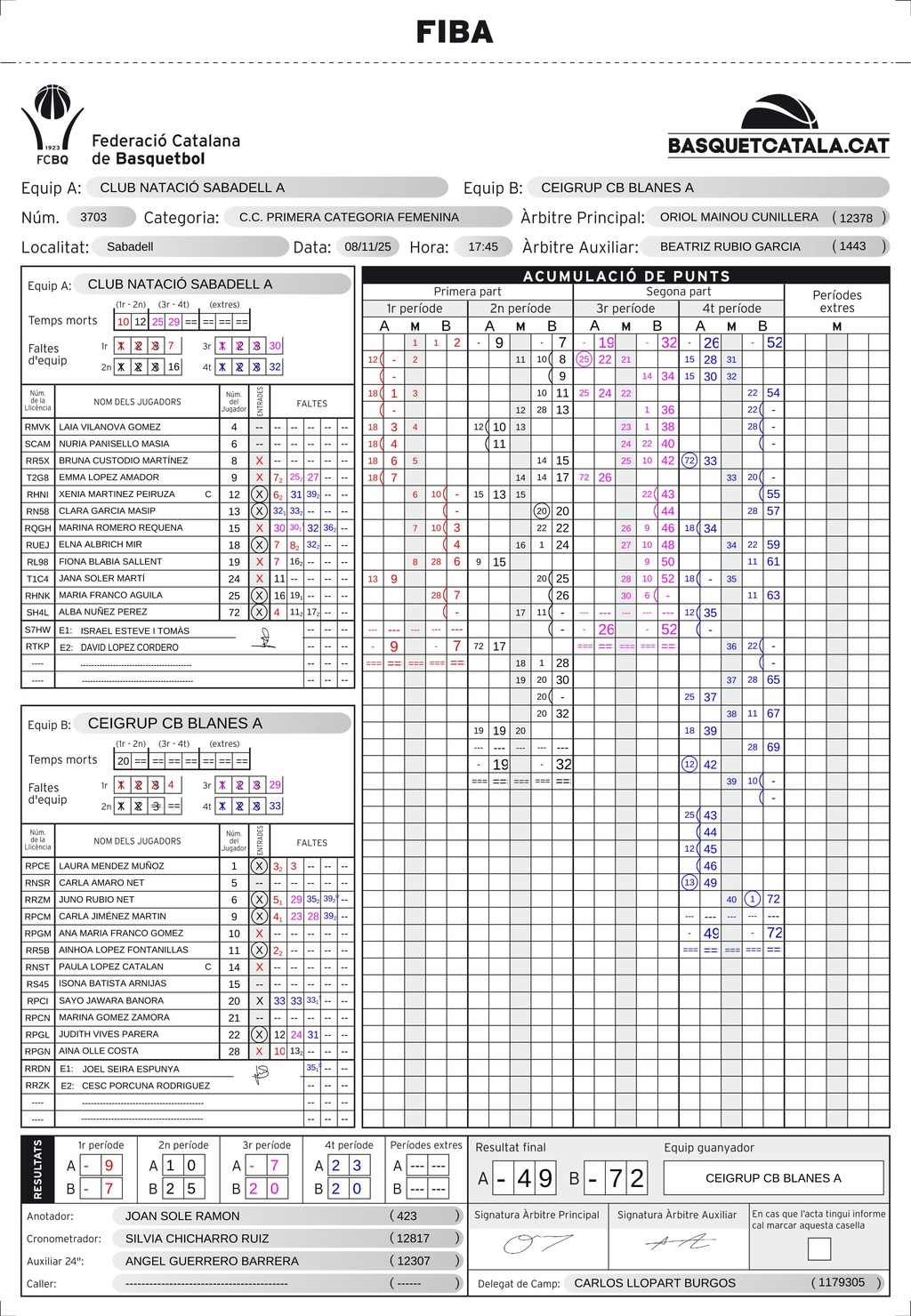 El Ceigrup C.B. Blanes va sumar contundent victòria a la pista del Club Natació Sabadell A per un clar 49 a 72, demostrant una vegada més el seu gran moment de forma.