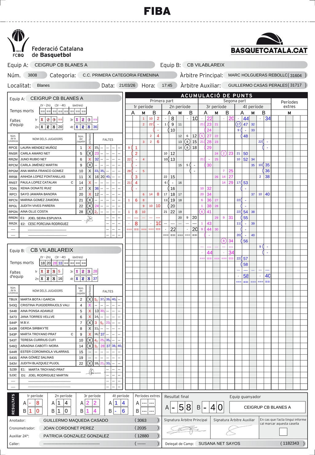 El CEIGRUP C.B. Blanes ha signat un gran partit aquest cap de setmana superant el CB Vilablareix per 58 a 40.