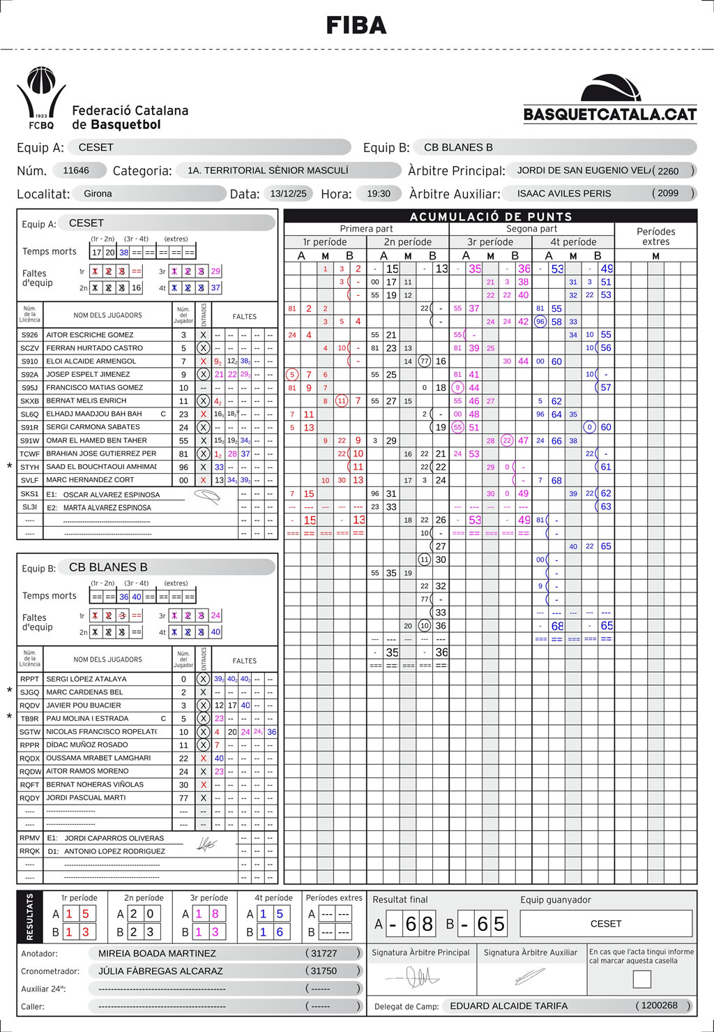 | 13/12/2025 | 19:30 | Sènior B masculí | 2025-26 | Jornada 10 |