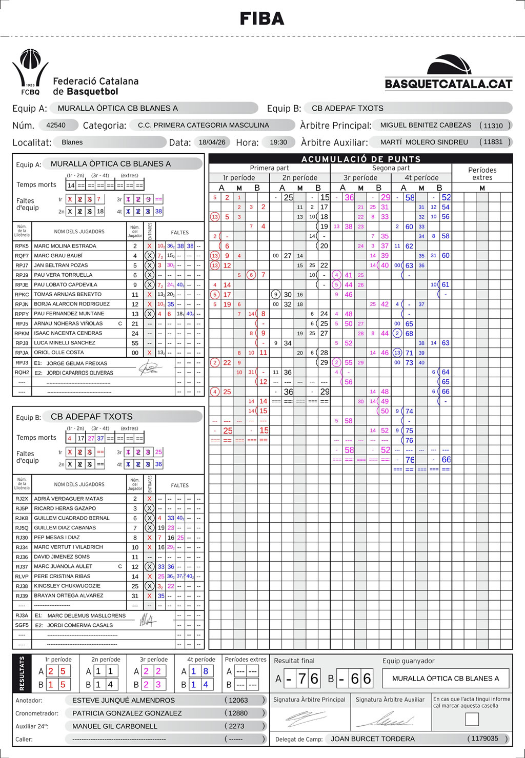 | C.B. Blanes | 25 | 11 | 22 | 18 | 76 |