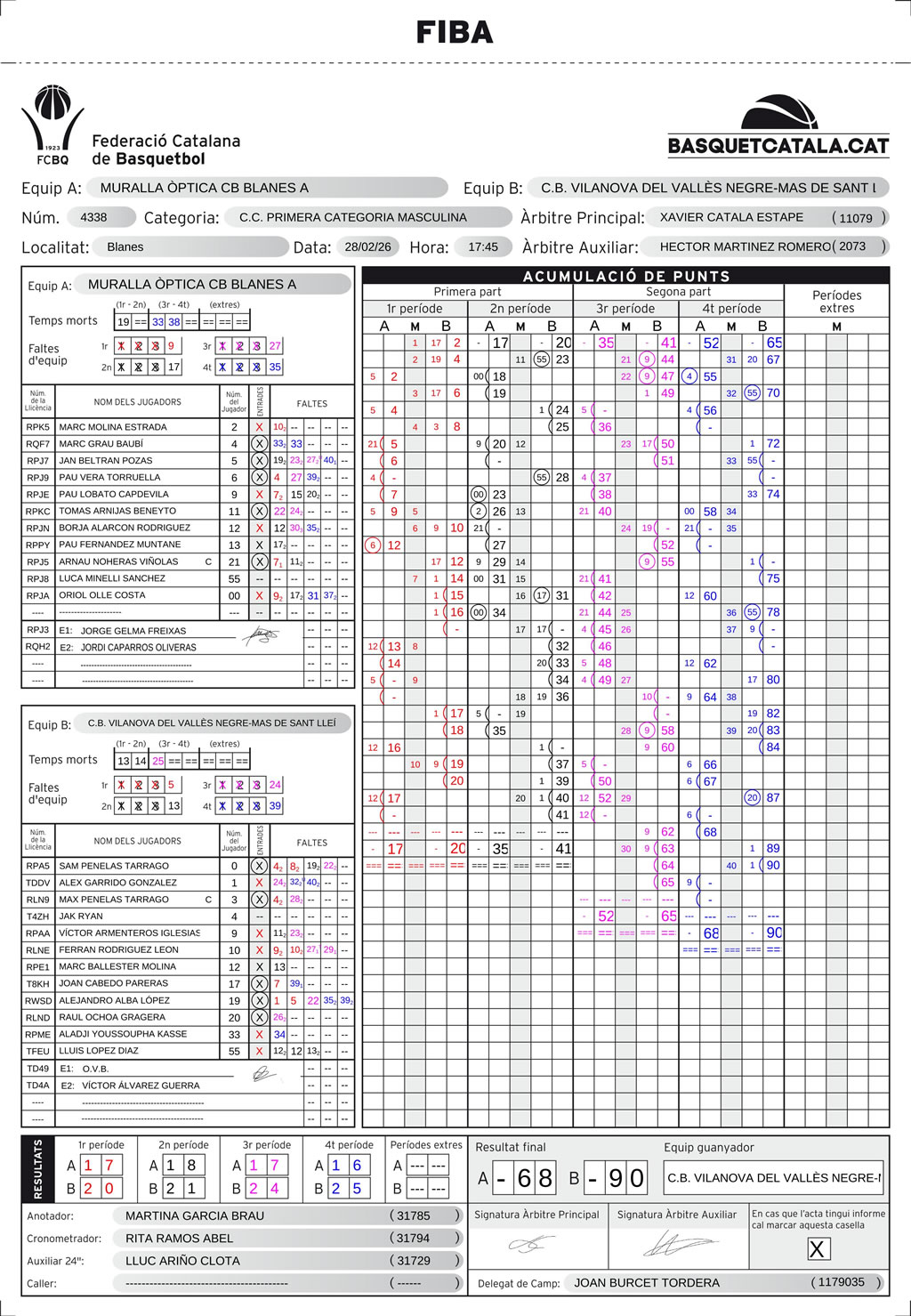 | C.B. Vilanova del Vallès | 20 | 21 | 24 | 25 | 90 |