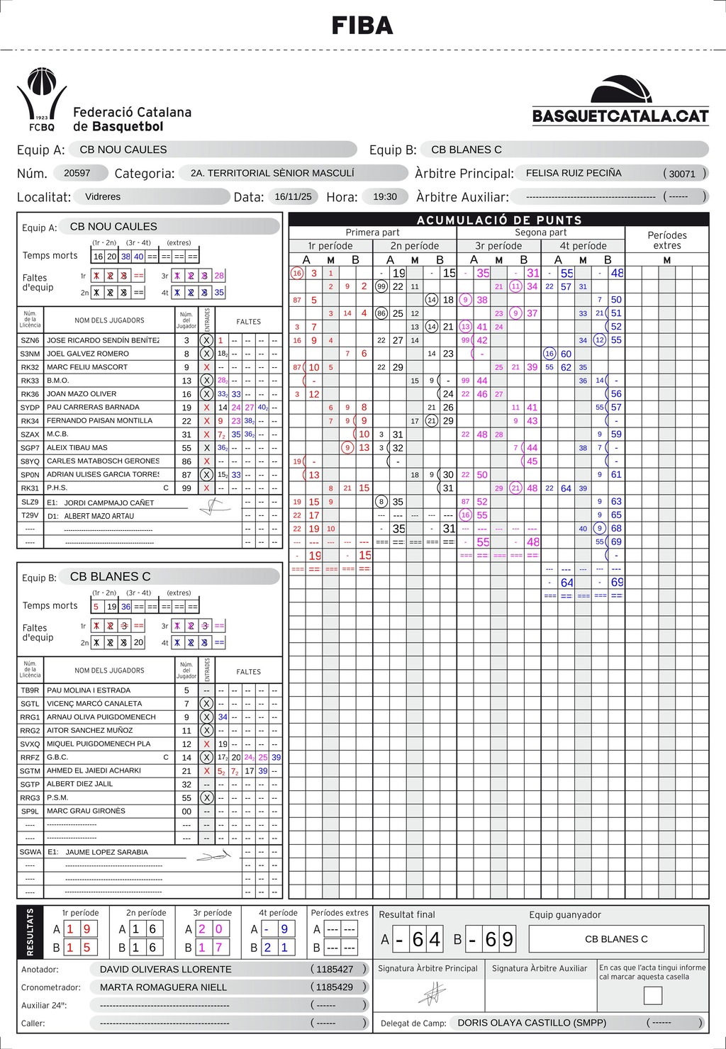 | 16/11/2025 | 19:30 | Sènior C masculí | 2025-26 | Jornada 7 |