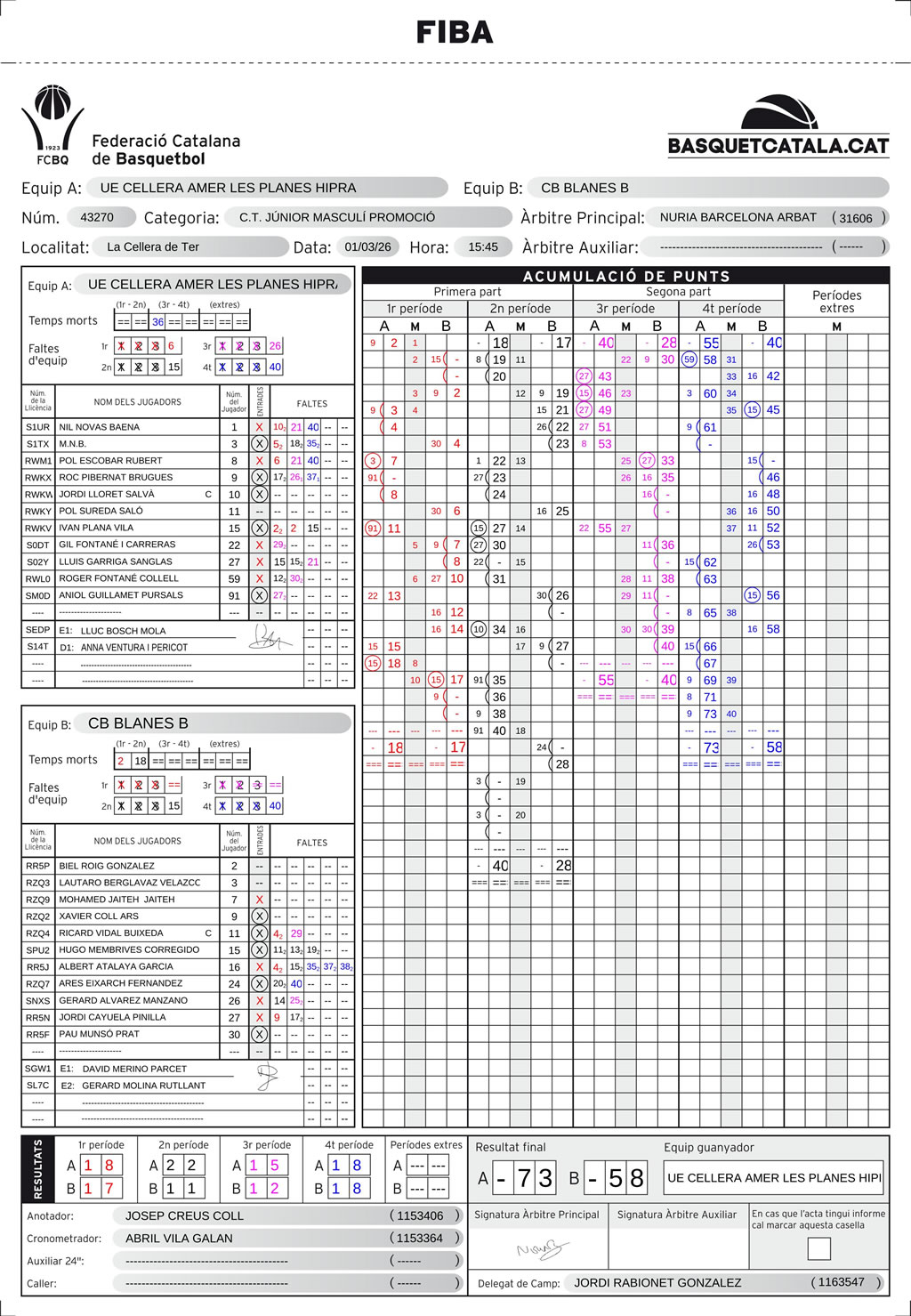 | U.E. La Cellera – Amer – Les Planes | 18 | 22 | 15 | 18 | 73 |