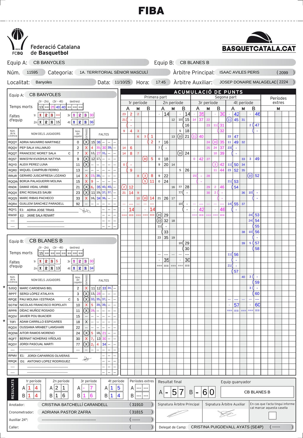 En un final d’infart, el Sènior B ha sabut mantenir el cap fred i tancar el partit. El 57 a 60 final reflecteix l’equilibri que hi ha hagut a la pista, però també la determinació d’un equip que no s’ha deixat intimidar.