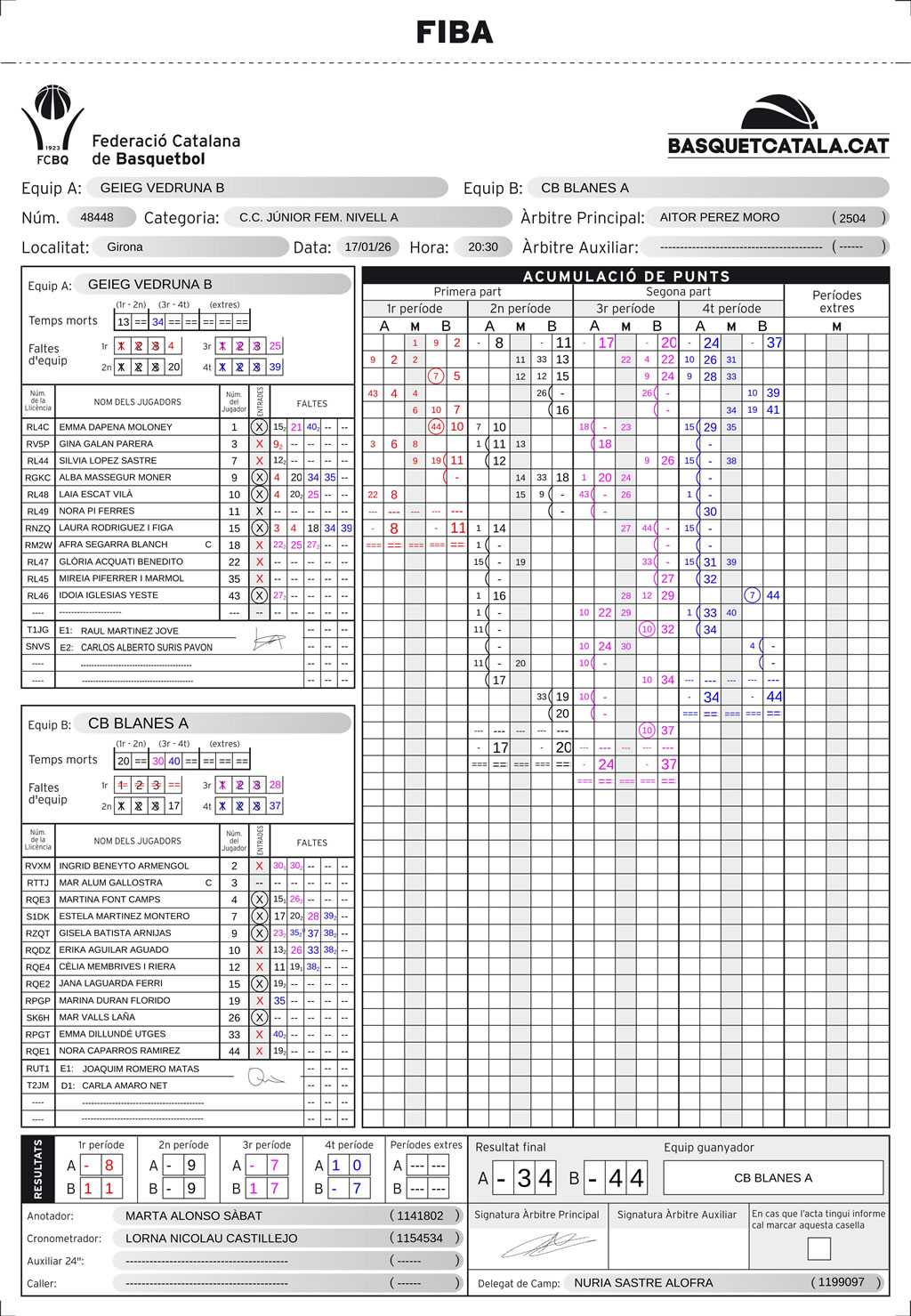Però el Blanes, manté la pressió, i amb un marcador baixet, s’emporta la victòria. No cal fer molts punts, només cal fer-ne més que el rival, i el Blanes en fa 10 més.34-44