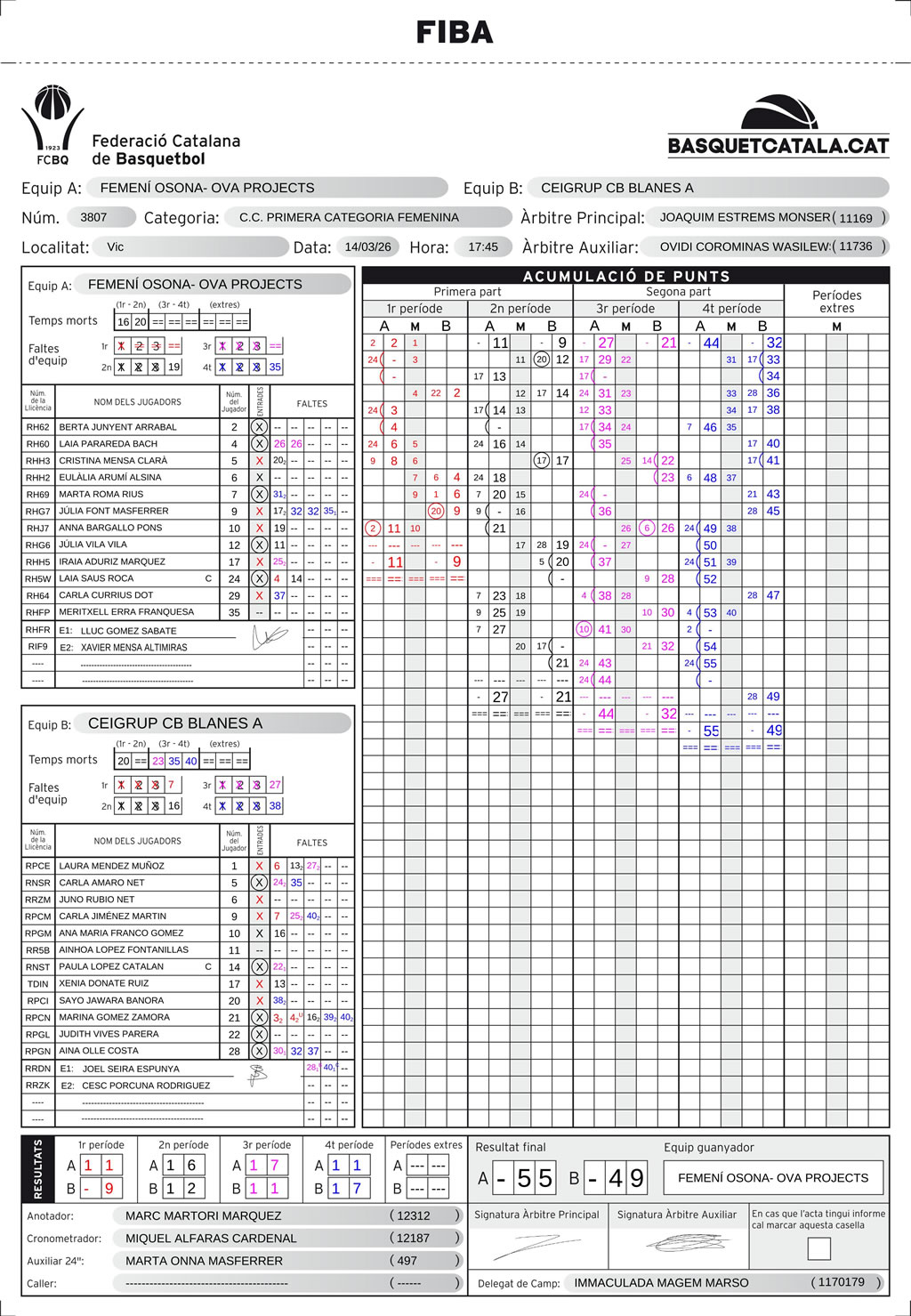 Femení Osona — CEIGRUP C.B. Blanes