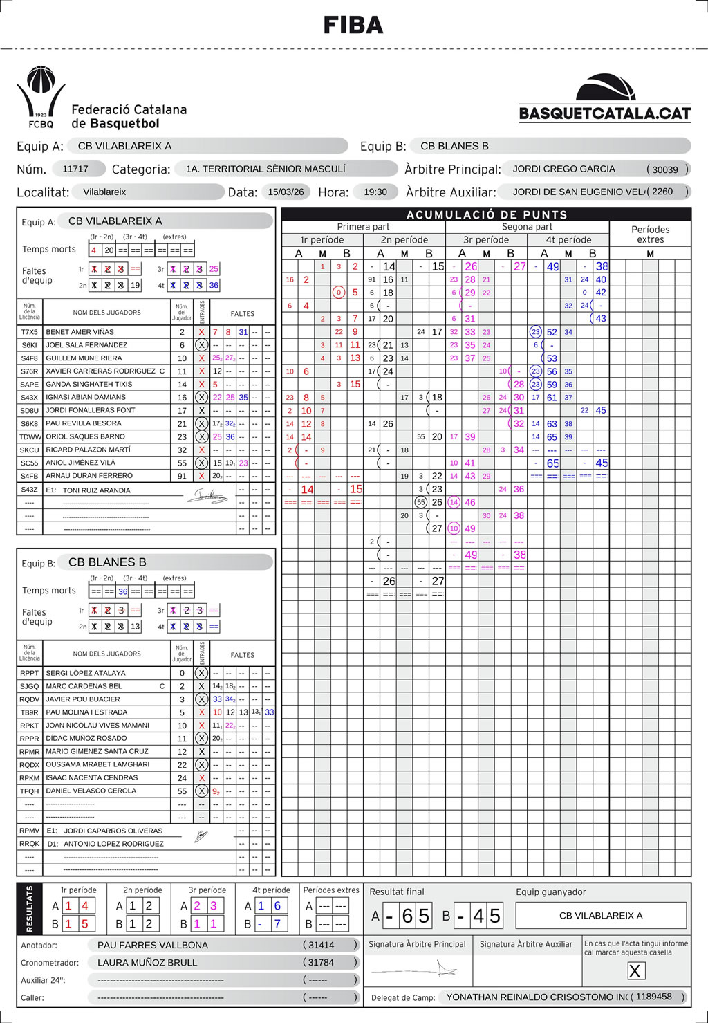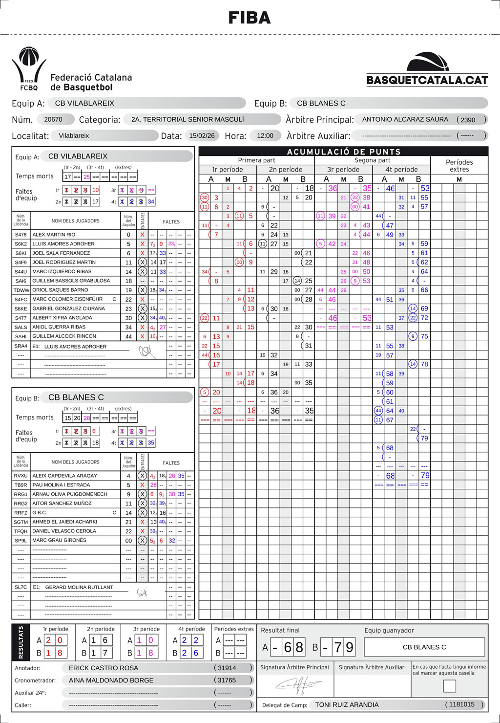 C.B. BlanesC.B. Vilablareix — C.B.U. Lloret