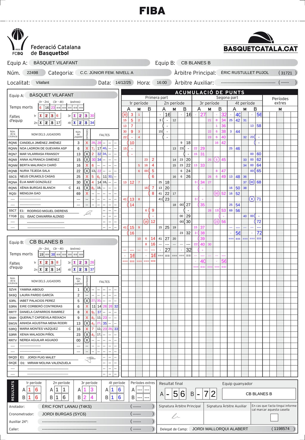 El 14-28 final va arrodonir un patit preciós. El resultat final 50-79 reflecteix la superioritat de les CAF Blanes. El públic va gaudir d’un gran partit, on l’equip va demostrar treball, actitud i una progressió molt positiva.