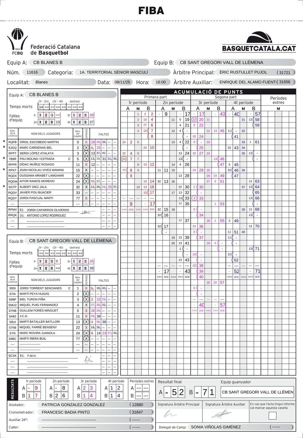 C.B. Blanes B — C.B. Sant Gregori Vall de Llémena